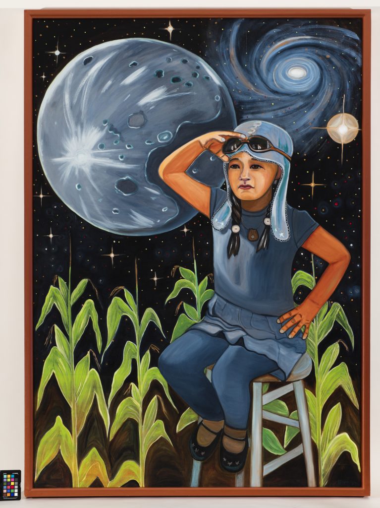 “My favourite collection item tends to change often, depending on my mood and what is out on display, but as of right now it is ‘Raven’s World’ by Shelly Niro,” said Frerotte. “The work is so magical and hopeful, with Niro’s granddaughter pictured looking to the stars.