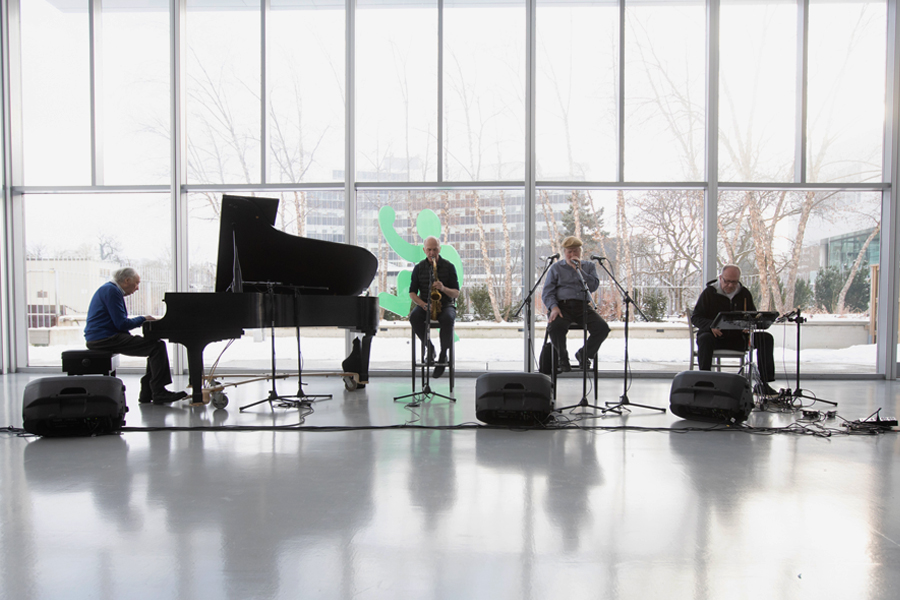 Also showcased at our Winter Exhibitions Opening was an instalment of Watch It Burn, a music/film/performance series coordinated by Zula Creative Music and Arts. Just as during the 1978 celebration at the Centre Pompidou, Snow performed with his musical group, CCMC, delivering their infamous form of jazz and improvisation. Paired with CCMC’s music performance was a screening of Canadian composer John Oswald’s Homonymy (1998), a short film homage to Snow’s well-known short So Is This (1982). Also positing a response to Snow’s work, local arts collective (For) No Other Reason performed Undercut, a performance reaction to Snow’s iconic Walking Woman series.