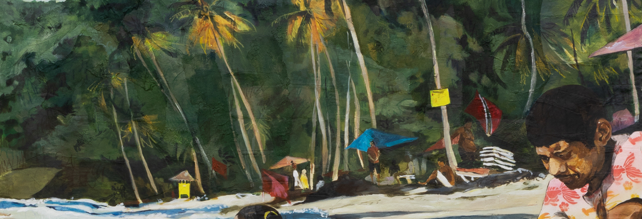 Header Image: Kareem-Anthony Ferreira, Day at the Beach (detail). 2019. Oil, mixed media, canvas. Courtesy of Nino Mier Gallery and Artist. Photo by Dawn Blackman.
