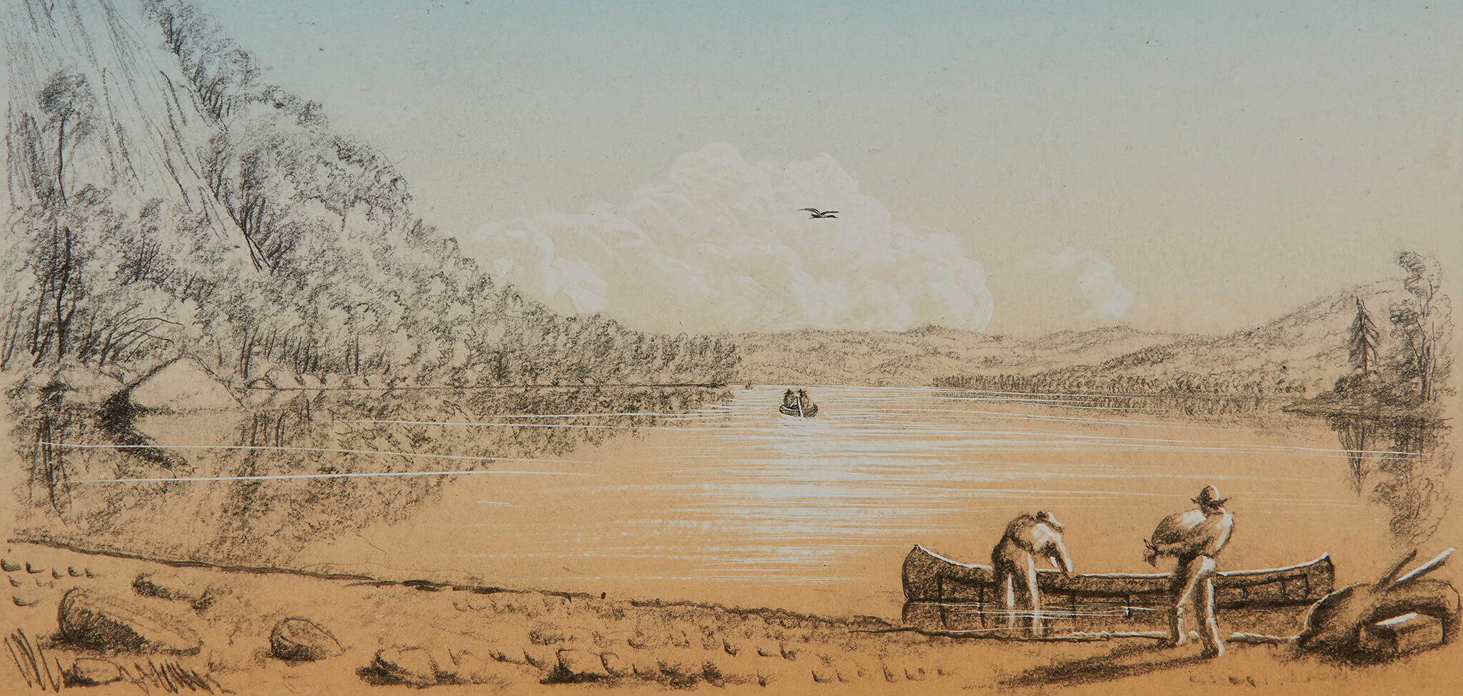Lead Image: William George Richardson Hind (Canadian 1833-1889), An Anchor for the Night at Batchewan, watercolour and gouache on card. The Bert and Barbara Stitt Family Collection, 1981