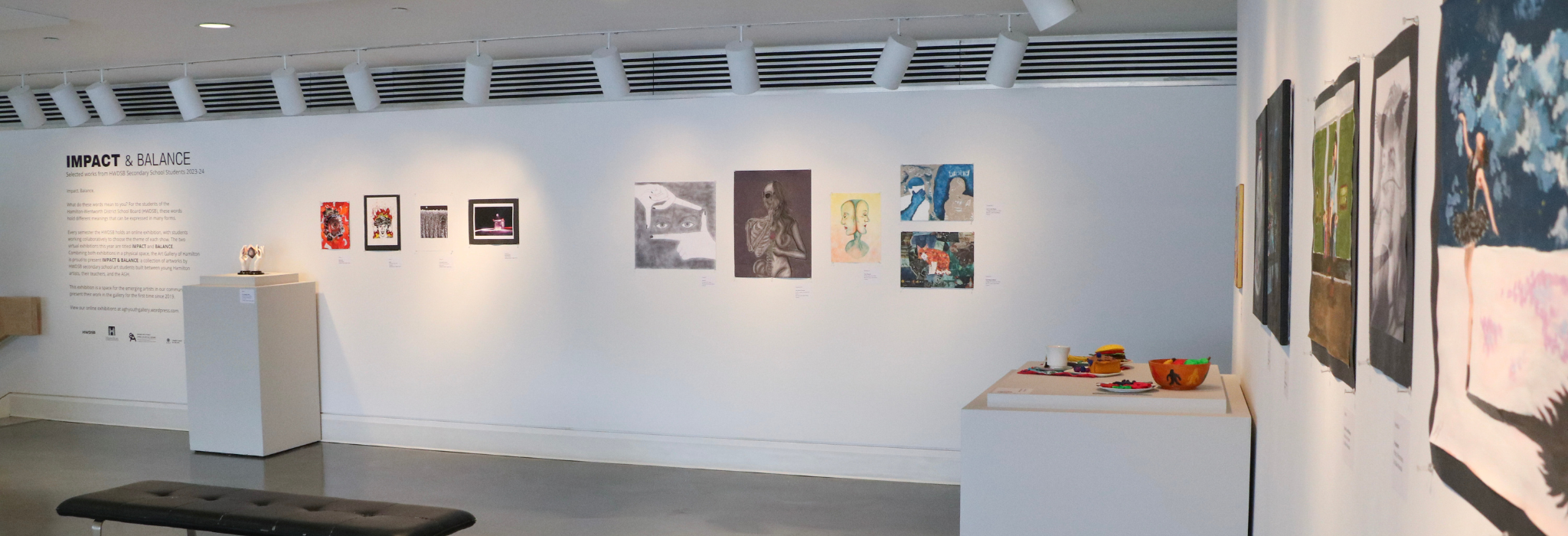 Every semester the HWDSB holds an online exhibition, with students working collaboratively to choose the theme of each show. The two virtual exhibitions this year are titled IMPACT and BALANCE. Combining both exhibitions in a physical space, the Art Gallery of Hamilton is proud to present IMPACT & BALANCE: a collection of artworks by HWDSB secondary school art students built between young Hamilton artists, their teachers, and the AGH.