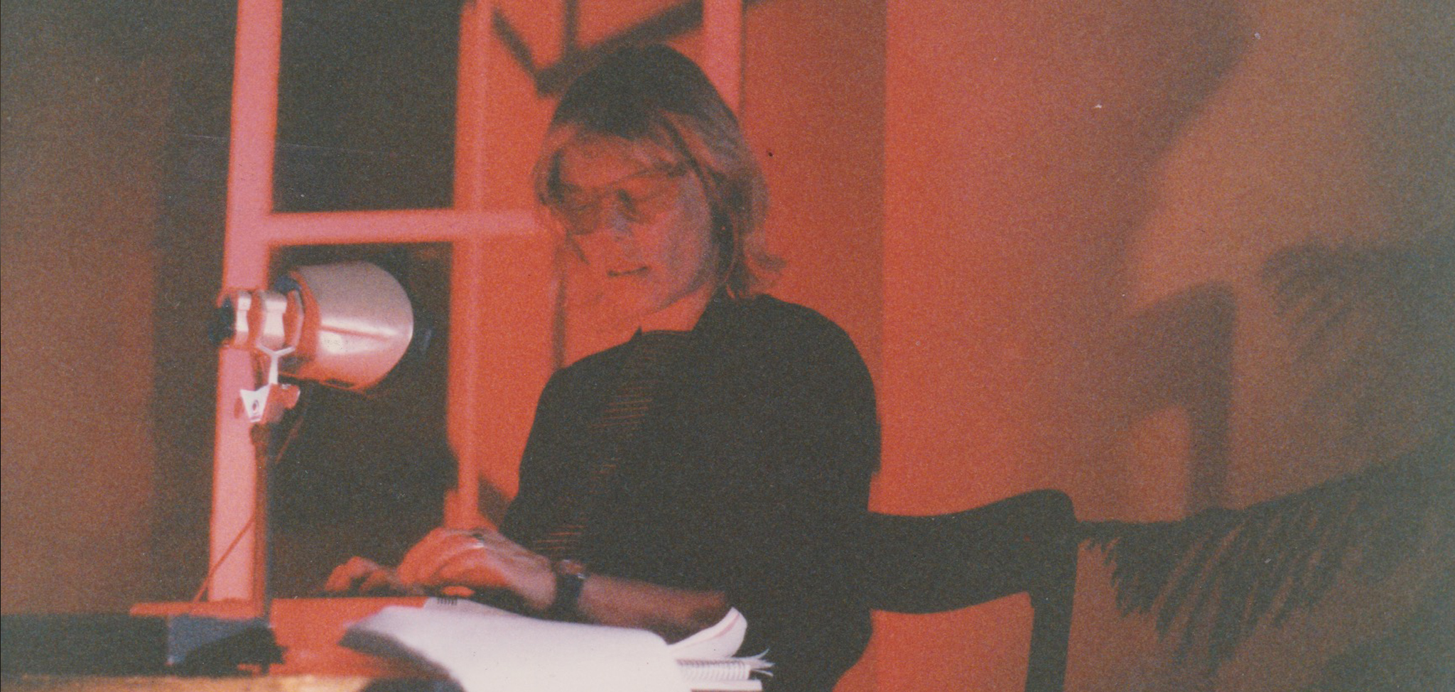 The videos on view are unique combinations of performance documentary and cinematic collage. Hutchinson’s early practice is largely autobiographical—her expressive, stark and highly personal poetry is read aloud and interspersed with experimental music, often with images of herself as she performatively navigates her appearance. These works from the 70s and 80s revolve around self-representation and her exploration of identity in the context of second-wave feminism, in contrast to her conservative upbringing. Hutchinson’s later works delve deeper into theatrical performance, poetically activating personal and social issues, such as in the work In Safe Places, a meditation on mental health and the environment.