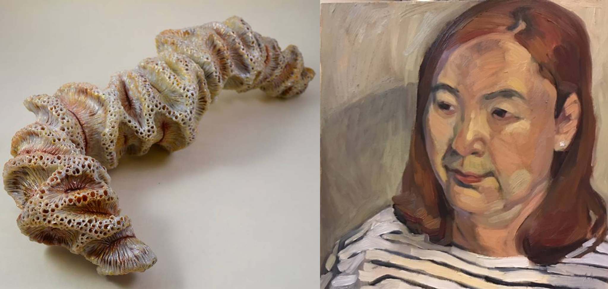 Header Image: [left] Pat Martin, Heejung, 2020, oil [right] Tracey Mae Chambers, Wire Coral, 2020, encaustic
