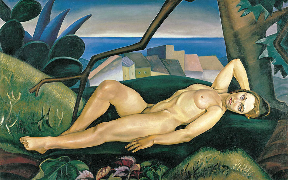 The artists’ works—two paintings and two sculptures—focus on nude figures either posing, relaxing, or writhing. Heward’s reclining female figure (fig. 2) has all the physicality one would expect of sculpture in the round, whereas Penny’s half-length and headless torso (fig. 3) transitions from the lifelessness of dark bronze to the colourful detail of Heward’s painting. The detail devoted to the figure’s outstretched arm and delicately sculpted fingers is more characteristic of paintings, as demonstrated by Delaunay’s depiction of the rippling and muscular Ixion (fig. 5). By using colour in his sculpture, Penny ever so slightly breathes life into the seemingly lifeless bronze. Painters similarly enliven their figures by enhancing their realistic appearance. In each case, artists manipulate their media in an attempt to give life to their work.