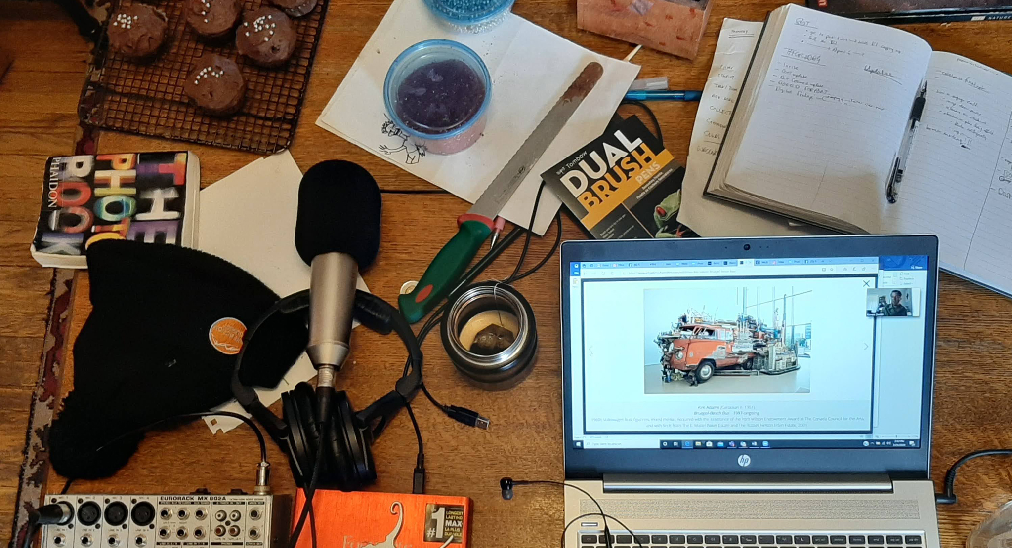 And then, what about ambivalence? This feels difficult to admit, but trying to push the mission of an Art Gallery in such uncertainty can be difficult, even for us deep believers. My partner works in social service within the city’s shelter system, and everyday contends with the amplified urgency of need for those who are severely isolated, on reduced incomes, struggling with health issues — worrying about the relevance of a public art gallery can feel luxuriously off–target. To put it another way, yesterday I woke up and started reading George Monbiot in the Guardian postulate on ways current environmental crises will crash into pandemic crises. I then somehow had to turn around, sweep away the food crumbs from my laptop and try to coordinate a collection–based series of art programs for young and old?